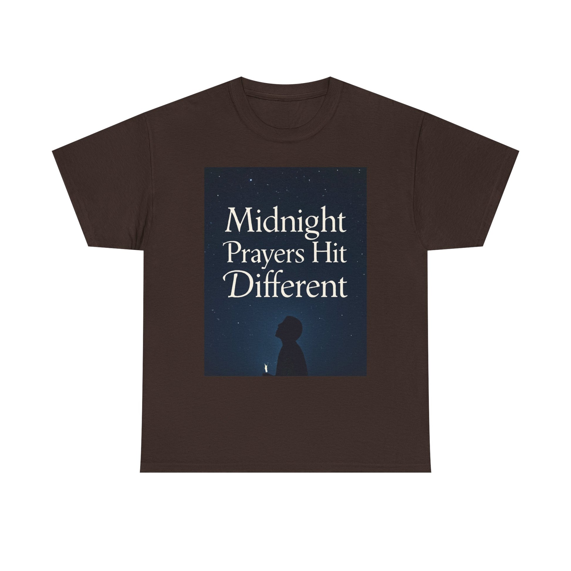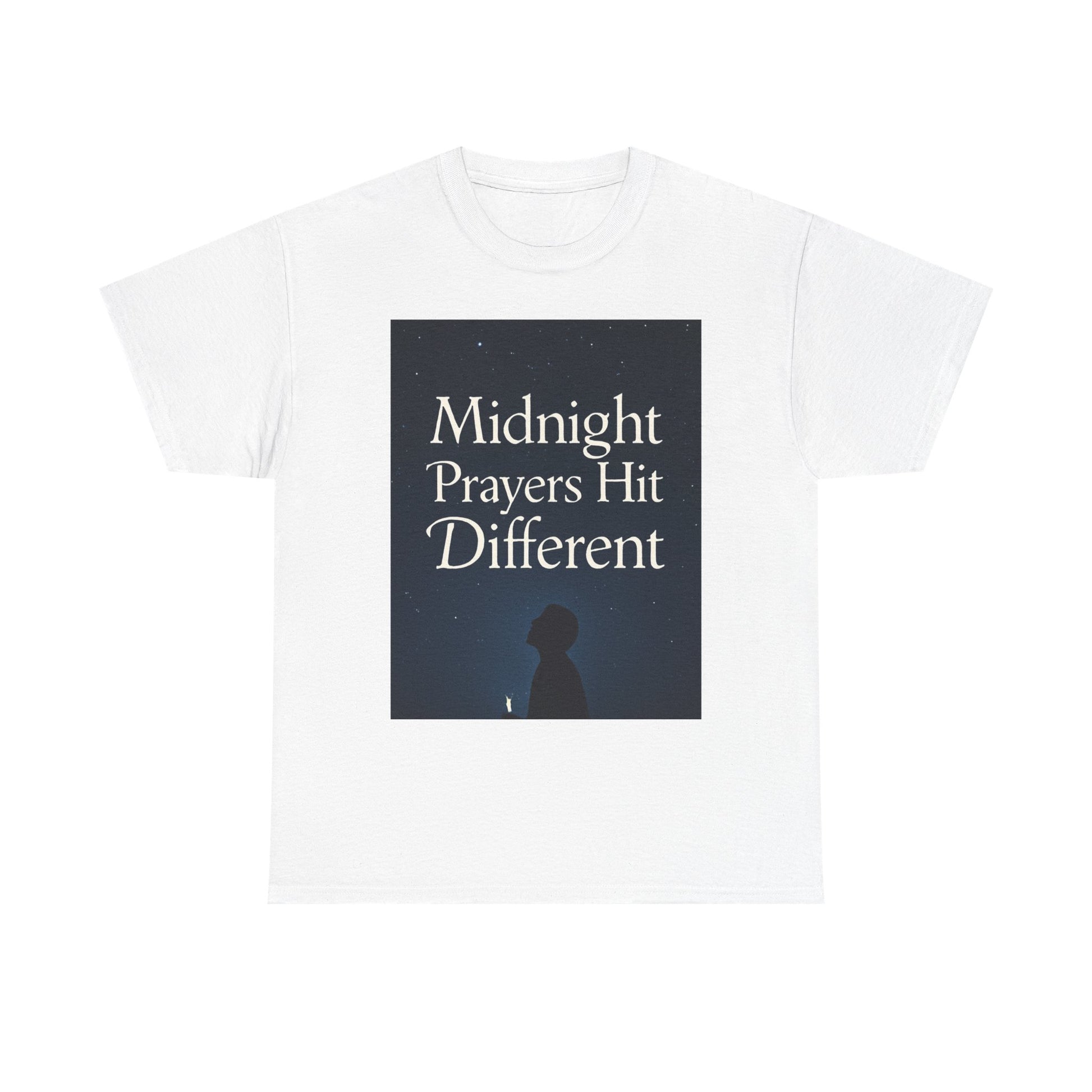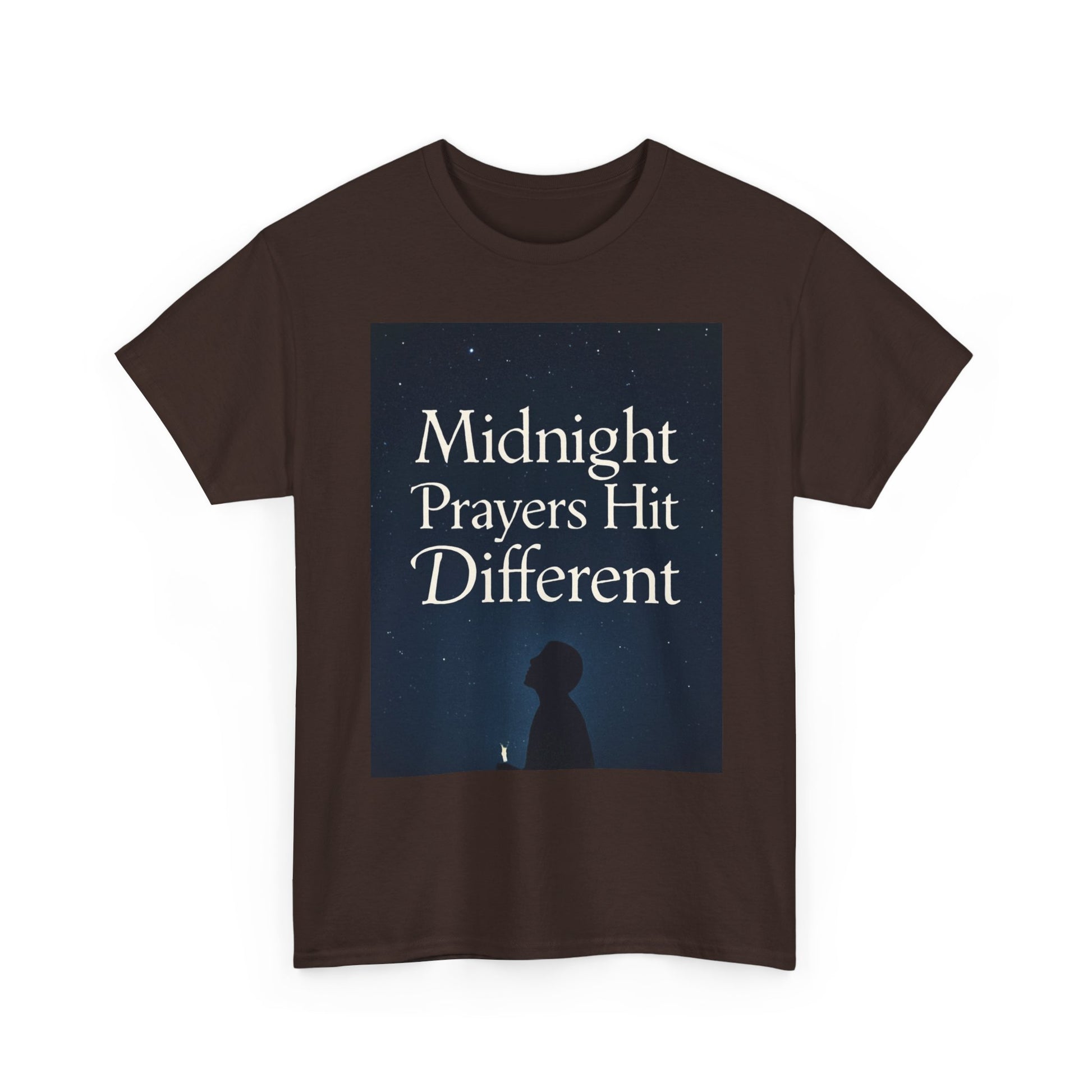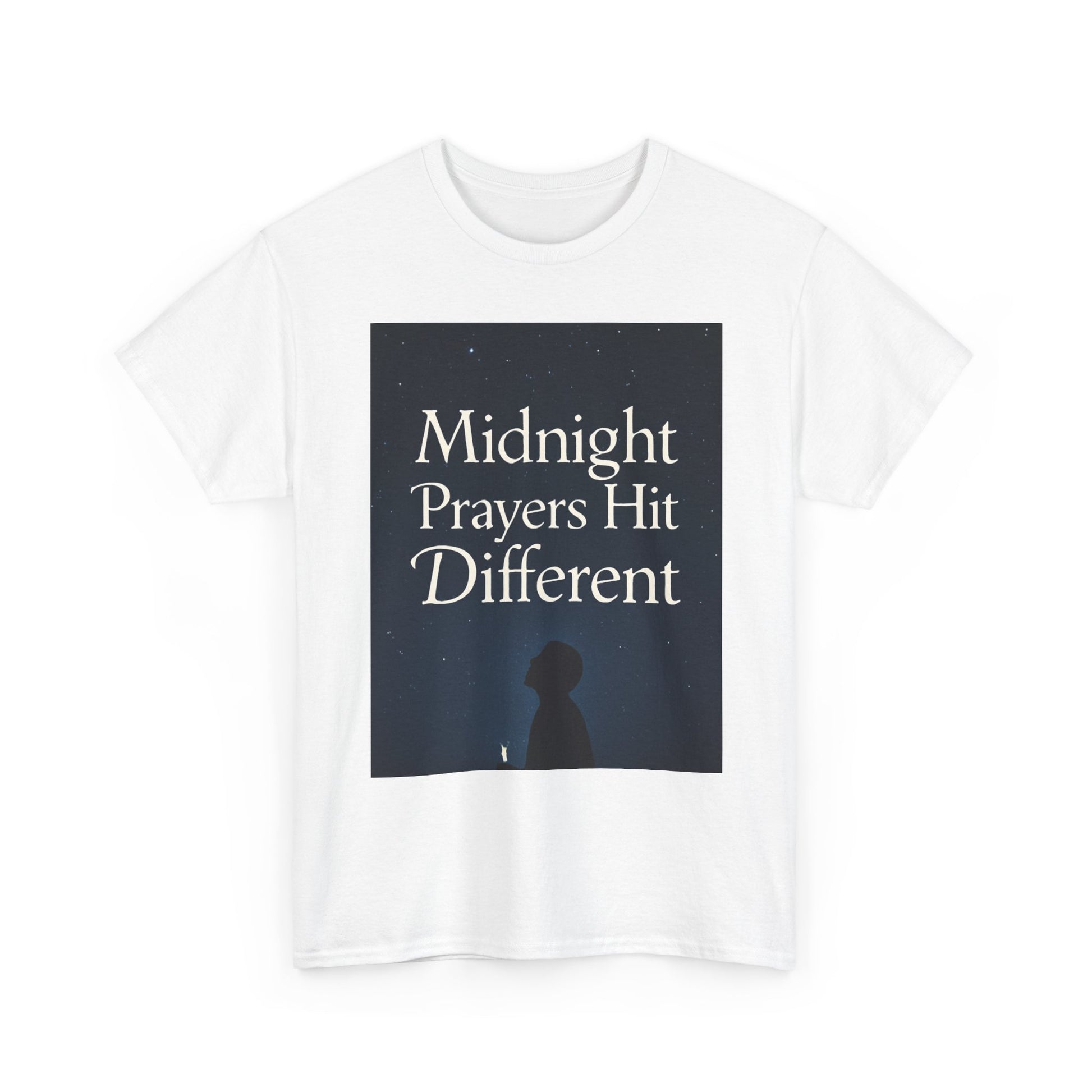 - Durable print that preserves key phrases: "Midnight Prayers Hit Different," "Vulnerable Christianity," "Night Prayer Warrior" – optimized for searches in inspirational Christian shirts.